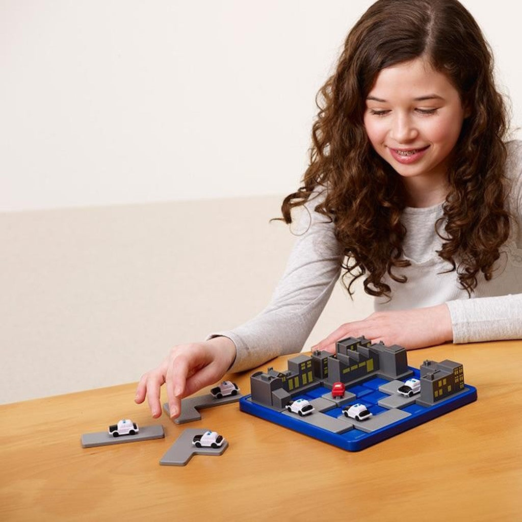 Contient : Un plan de jeu, quatre immeubles, un voiture rouge, six véhicules de police, un livret de règles, 80 défis et toutes leurs solutions.