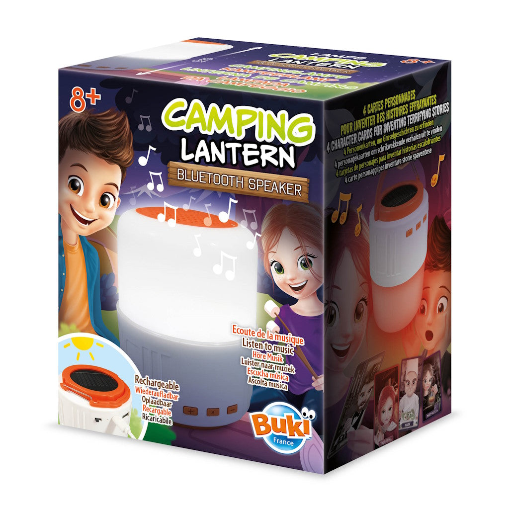 Une lampe de camping rechargeable avec une fonction enceinte Bluetooth. Elle se recharge grâce à son panneau solaire ou avec un câble USB.