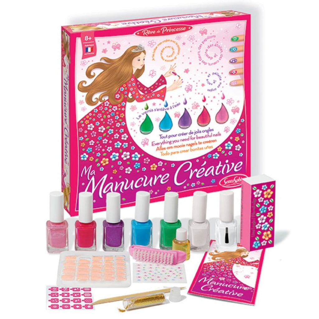 Un coffret très tendance pour se faire des mains de princesse. Les enfants vont pouvoir, le temps d’un après-midi peindre leurs ongles en vert, bleu ou même rose ! Ces vernis ont l'avantage de partir à l'eau : dès le premier lavage des mains, toutes les couleurs disparaîtront.