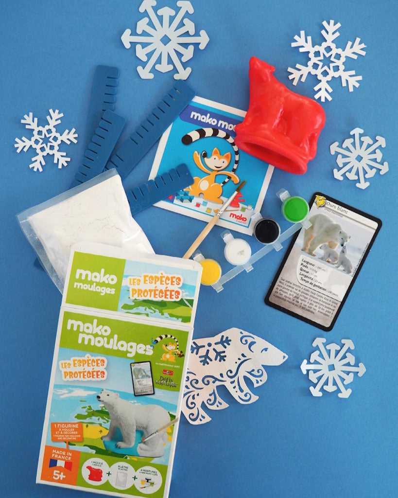 Avec ce kit créatif Mako moulages Ours polaire, moule et peins cette espèce menacée l'ours polaire avec de la peinture blanche irisée !