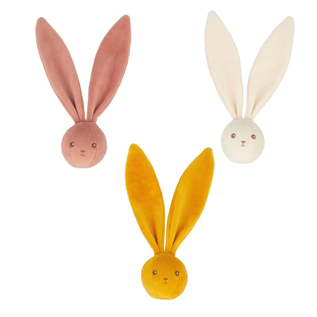 Les grandes oreilles de lapin permettent également de les accrocher facilement à la poussette, au cosy, au berceau ou encore sur le sac à langer, pour suivre bébé partout. Cette balle est un indispensable pour divertir les bébés dès la naissance.