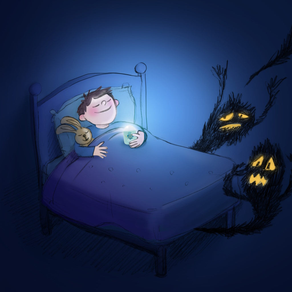 Grâce à sa technologie à LED, la veilleuse Nomade reste toujours froide, même sous les draps !